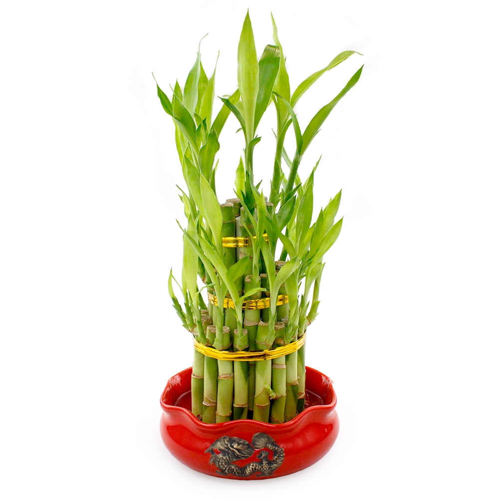 Live Lucky Bamboo 3 Tier Tower With Red Ceramic Dragon Planter By Nw Wholesaler Walmart Com